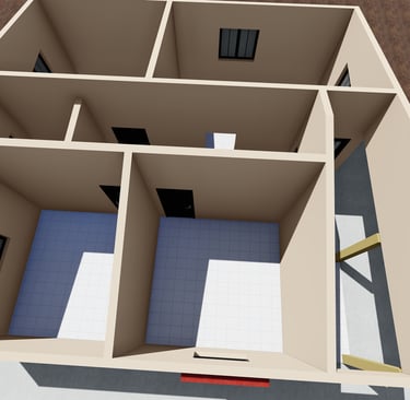 Soubassement dimensionné pour ajouter un étage plus tard : le jour venu, on retire la tôle et on coule une dalle en béton. Prévu dès aujourd’hui, pour votre demain.